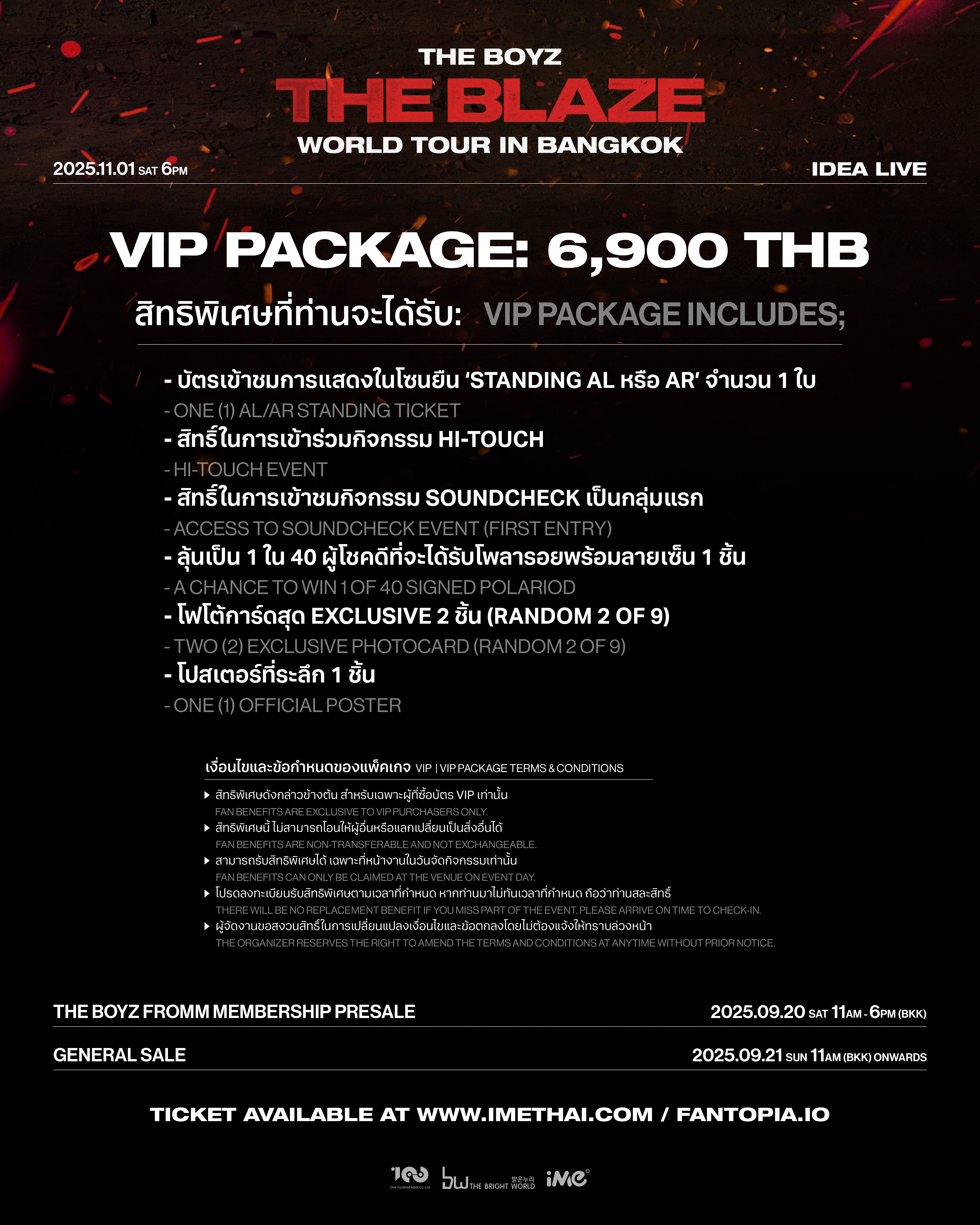 💵Tickets Price VIP PACKAGE 6,900 (Standing) / 5,900 (Standing) / 4,900 (Standing) / 3,900 / 2,900 THB.
