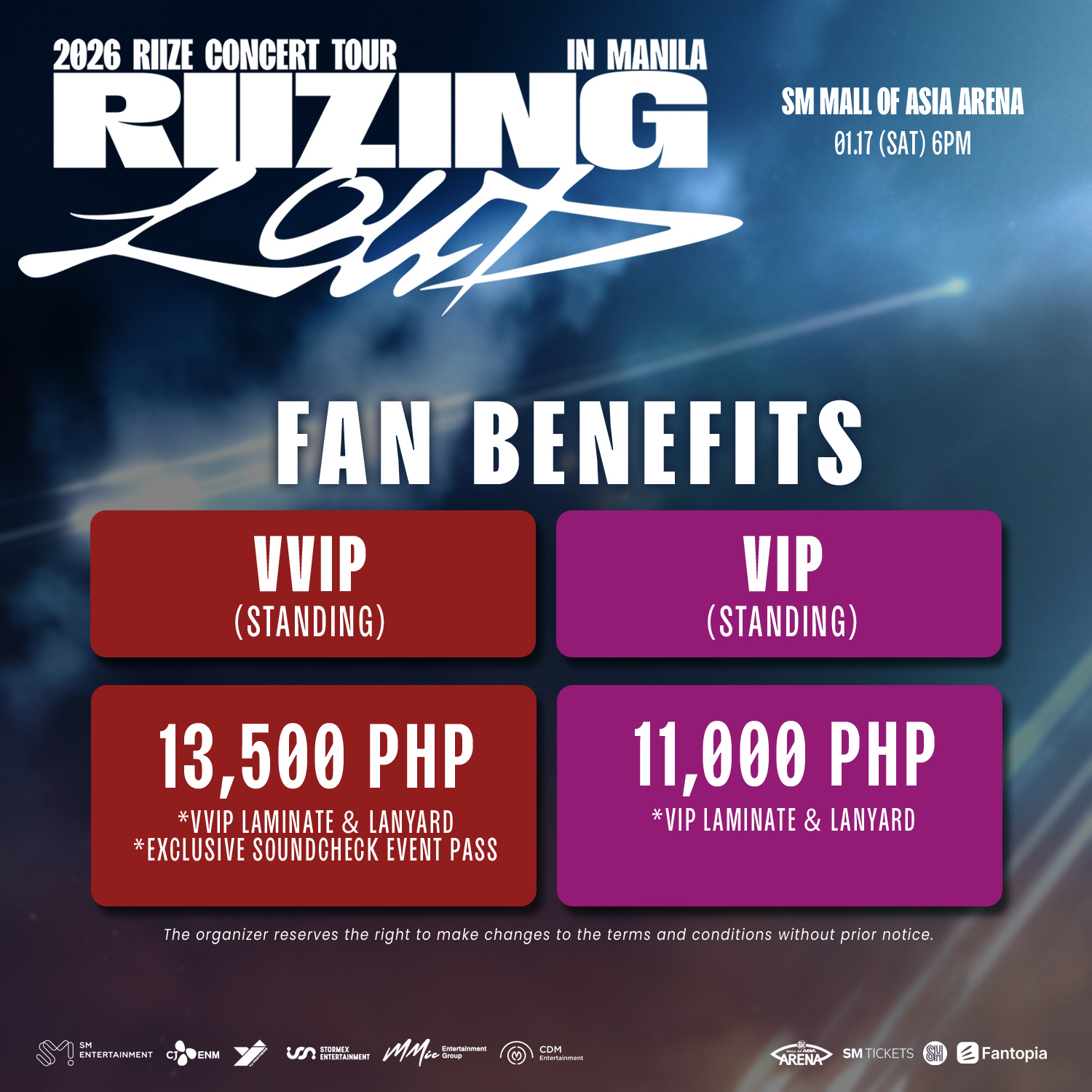 The hottest act of 5th gen K-POP is ready to showcase their unique charm and talents for the Filipino crowd with the 2026 RIIZE CONCERT TOUR [RIIZING LOUD] IN MANILA happening on January 17, 2026, 6 PM, at the SM MALL OF ASIA ARENA.