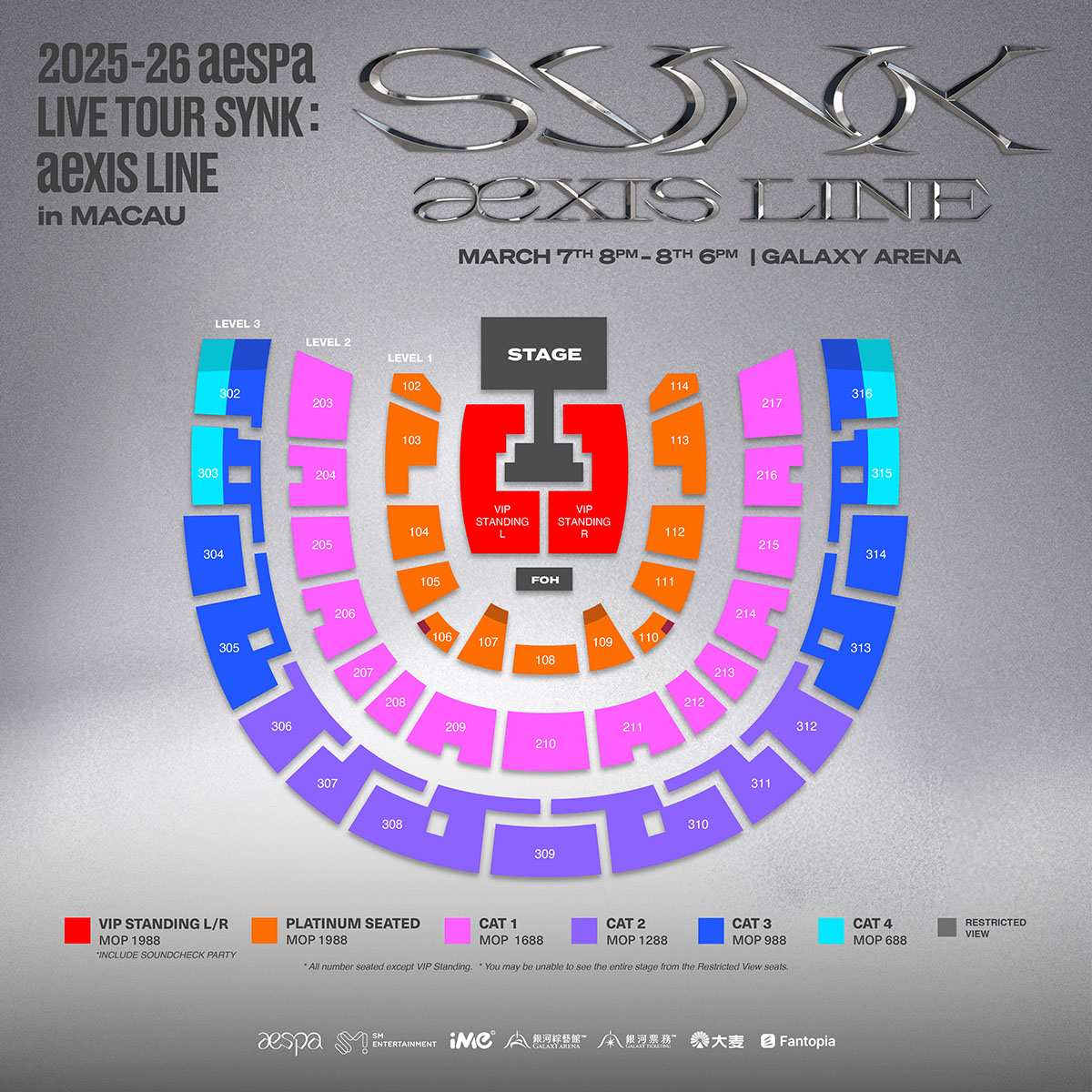 * 座位區皆為劃位座席,請依票面座位號入座。Each SEATED ticket is assigned a specific seat.