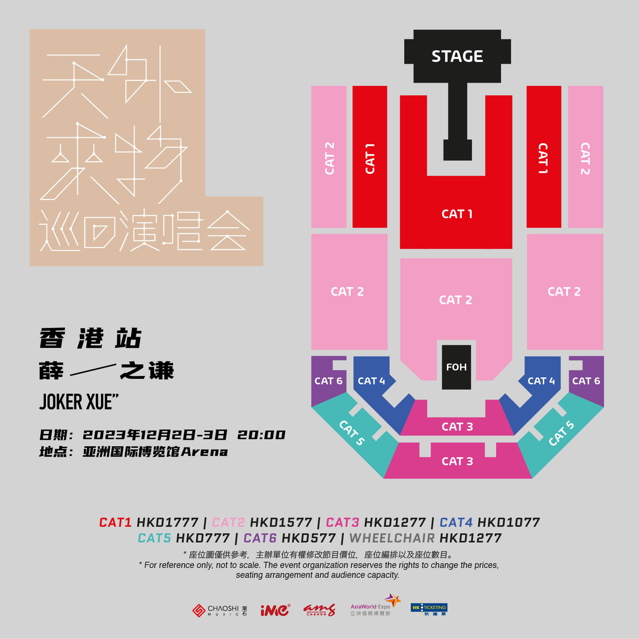 新增座位,數量有限!由點子娛樂(iMe)及亞洲音樂娛樂(AMG)主辦,內地人氣歌手薛之謙《天外來物》巡迴演唱會香港站將於2023年12月2至3日在亞洲國際博覽館舉行。這次是薛之謙時隔4年再度來港開演唱會,相信會讓期待已久的香港粉絲驚喜萬分。