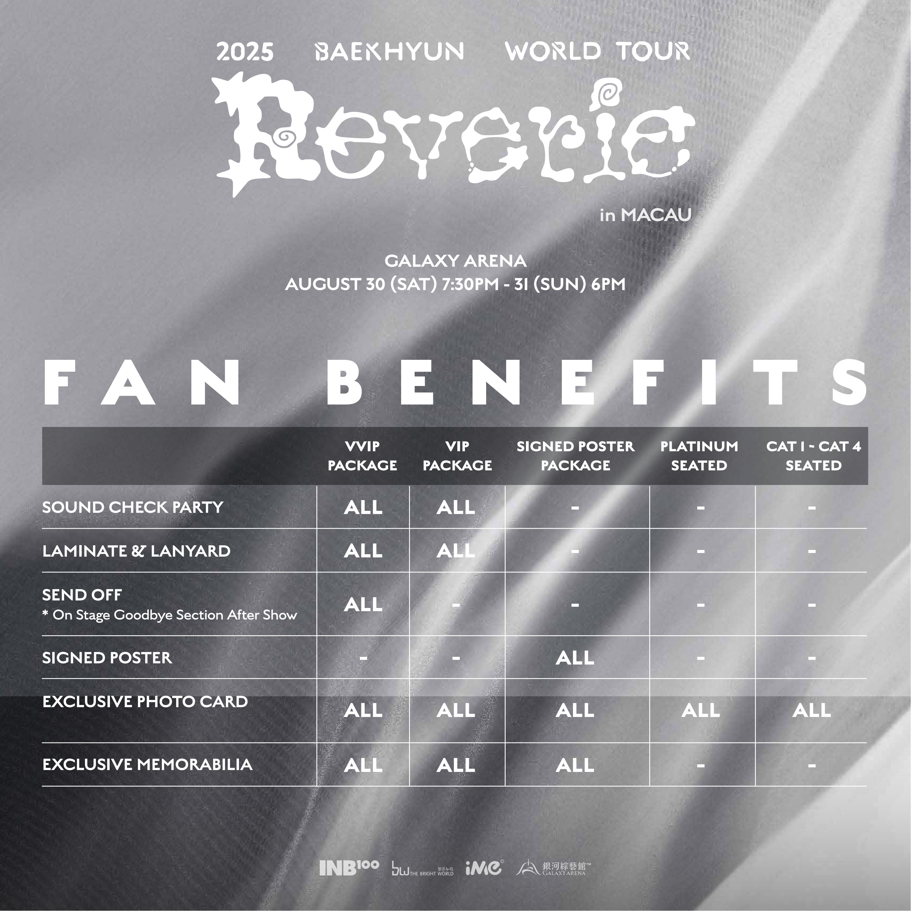 此次《Reverie》巡演是伯賢出道13年來的首次個人世界巡演,正如「Reverie」一詞所蘊含的意涵,伯賢希望能為粉絲們帶來如夢一般的時光,並留下一段全新的回憶。特別是這場巡演距離去年7月舉辦的《Lonsdaleite[dot] (론스달라이트 닷) 》已時隔約11個月,粉絲對於升級版「演出達人」伯賢的舞台期待值正持續升溫,預計將掀起更熱烈的反響。