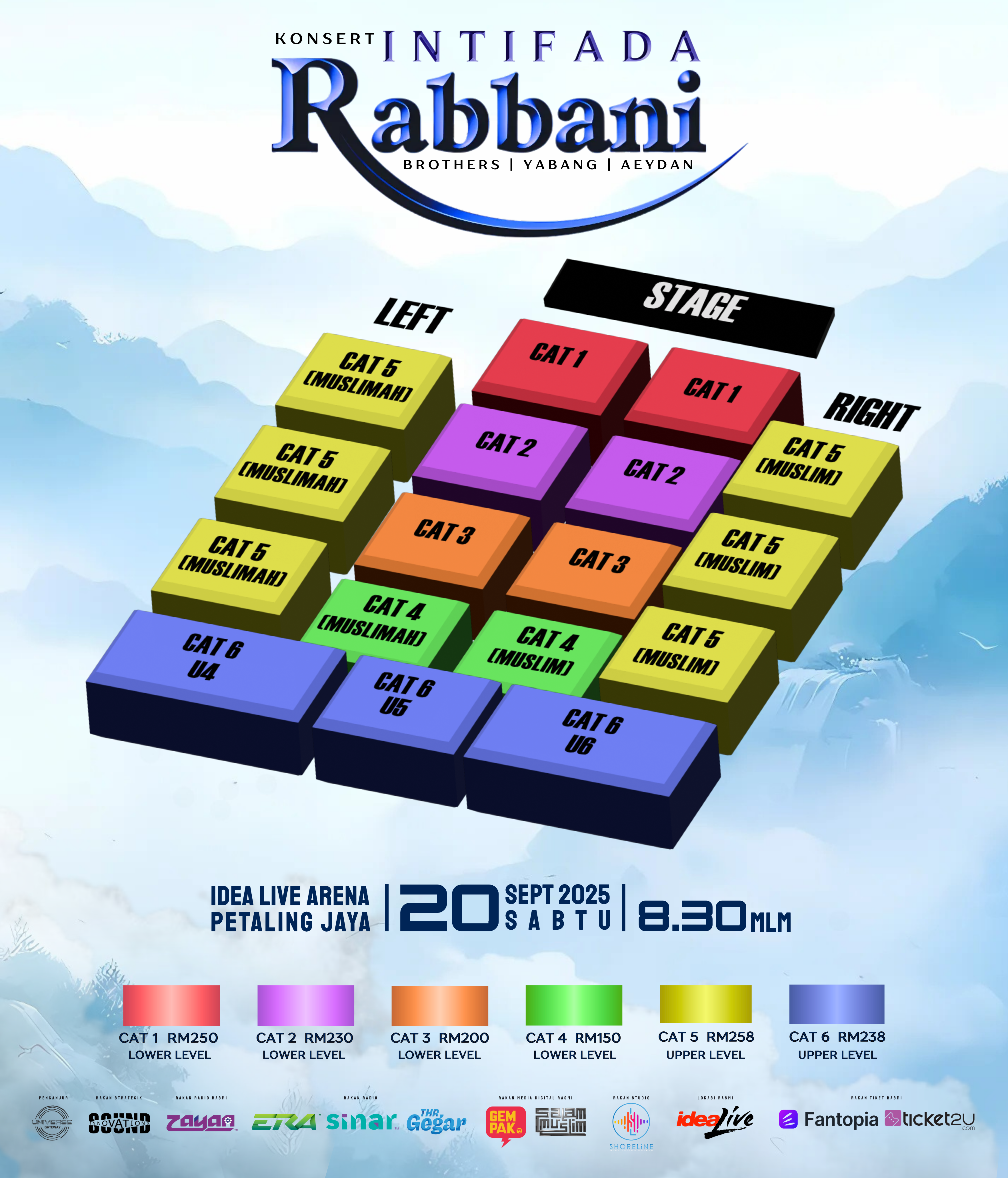 - CAT 4 Right (Muslim) – Lower Level (Free Seating): RM 150.00