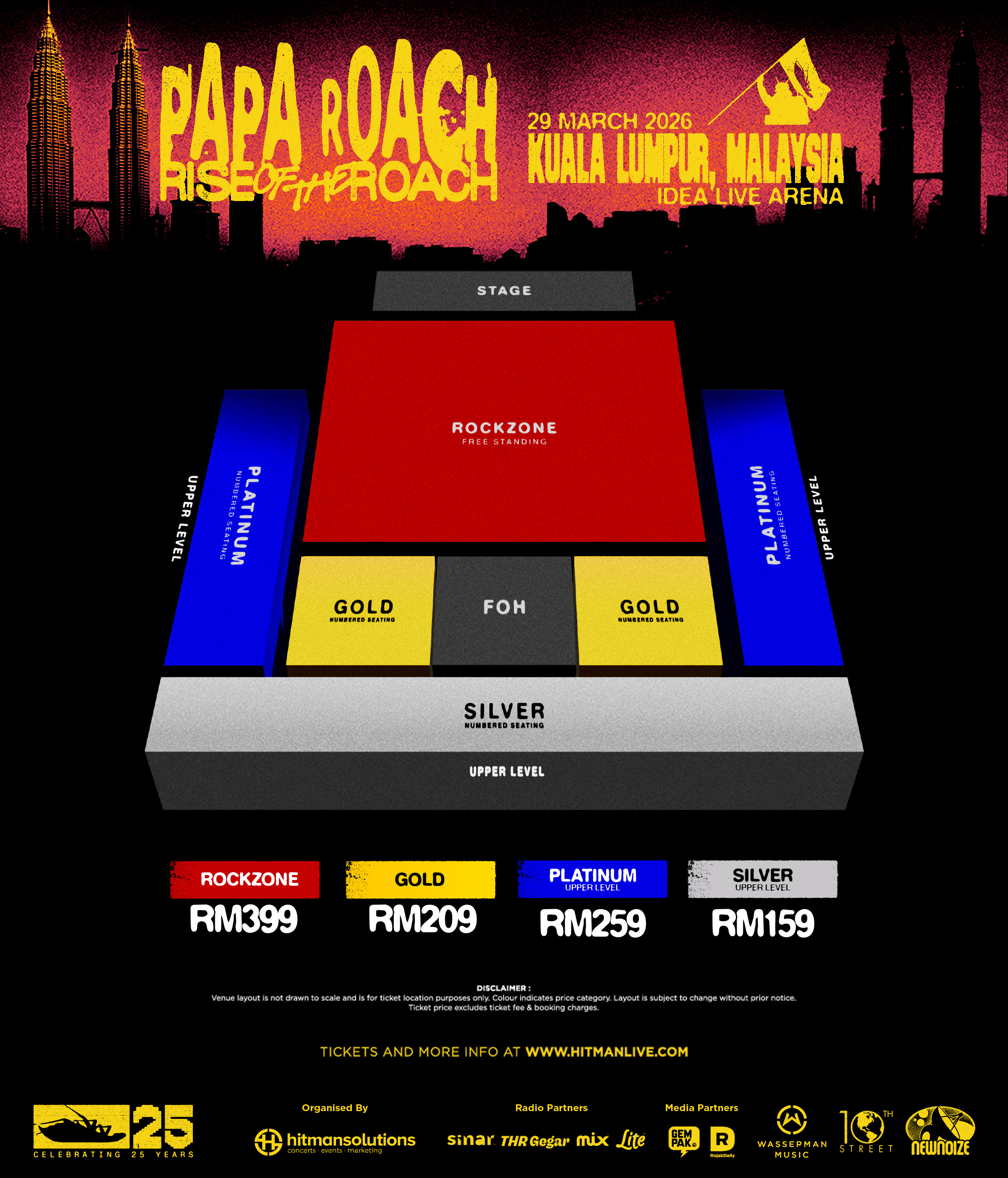 Tickets will be available for sale starting January 28th at 12 pm at www.hitmanlive.com. For concert inquiries, contact us at +6012-2655783 or concerts@hitman.group.