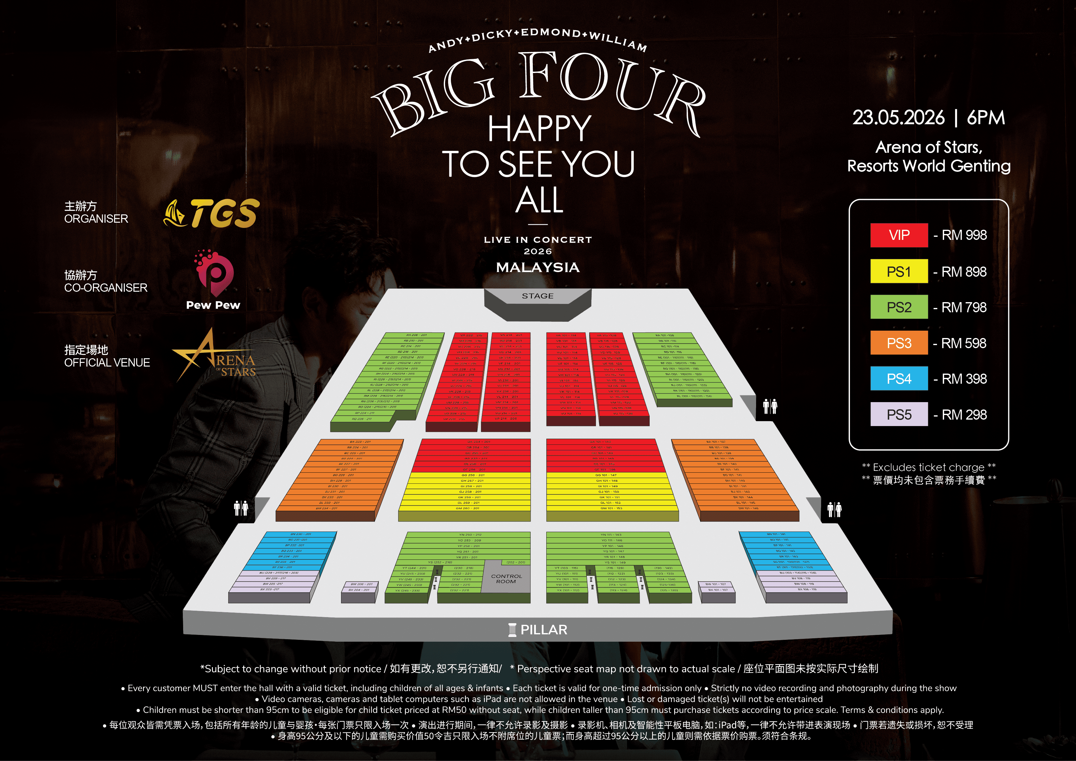 演出票价: VIP RM998 | PS1 RM898 | PS2 RM798 | PS3 RM598 | PS4 RM398 | PS5 RM298 |